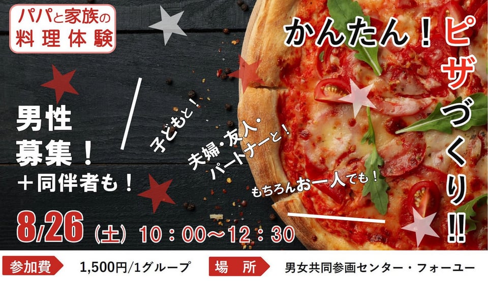 男性と同伴者の方を対象とした、楽しいピザづくり教室です。